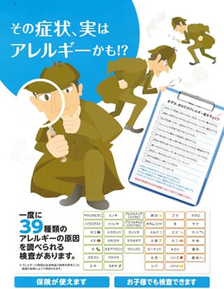 保険適用が可能なアレルギー検査(View39)をご希望の方はこちらからご予約ください。 当院では、一度に39項目測定できるアレルギー検査(View39)を行うことができます。 あなたの今お悩みの症状がアレルギー疾患なのか、そのアレルギーは何なのか、 39項目のアレルギーの原因が1度の血液検査でわかる大変便利で簡便な検査です。